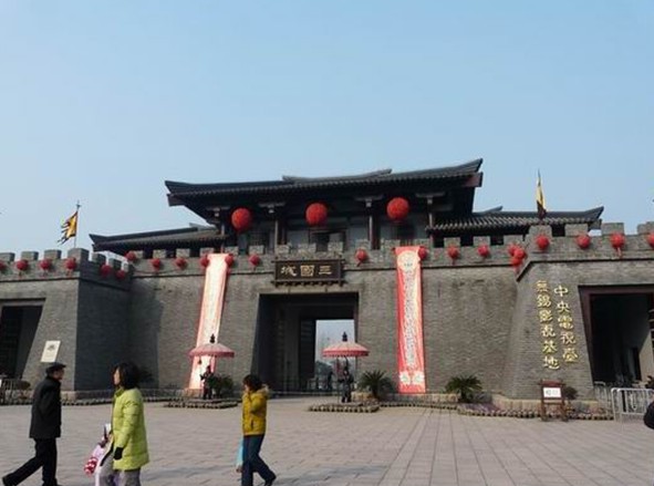三國(guó)城坐落在蔥蘢蒼翠的軍嶂山麓、風(fēng)景秀麗的太湖之濱,是中央電視臺(tái)為拍攝八十四集電視連續(xù)劇《三國(guó)演義》而興建的大型影視文化景區(qū),“劉備招親”、“火燒赤壁”、“橫槊賦詩”、“草船借箭”、“借東風(fēng)”、“諸葛吊孝”、“舌戰(zhàn)群儒”等十多集的重場(chǎng)戲均在此拍攝。它占地35公頃,是中視股份繼唐城景區(qū)之后推出的又一座集影視拍攝、旅游功能于一體的影視城。