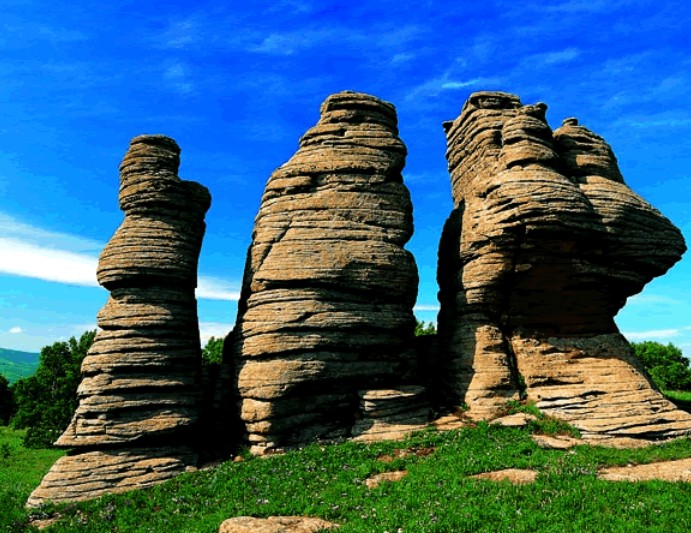 石林發(fā)育類型很多,形狀千姿百態(tài),觀瞻石林,有的像“石柱”、“石叢”、“石筍”,有的好似“石塔”、“石墻”,還有的像“秀女望月”、“比薩斜塔”。大興安嶺地區(qū)的冰斗、冰川U型谷、冰石河、角峰等冰川遺跡足以證明,這里第四紀(jì)冰川以來發(fā)生過冰川運(yùn)動(dòng)。