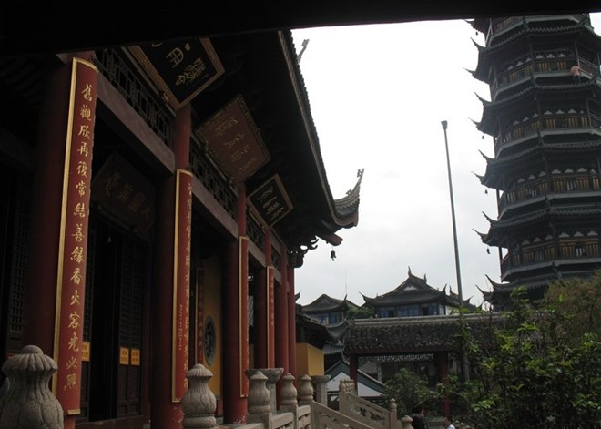 南禪寺有一座七級(jí)八面,高43.3米的古塔。傳說(shuō)是為了制服水患才把塔立在羊腰灣與運(yùn)河的交會(huì)處。 據(jù)《南禪寺記》記載,在北宋雍熙年間(984-988),有僧持缽而來(lái),走進(jìn)廟中,忽然不見(jiàn)了蹤影,后來(lái)發(fā)現(xiàn)寺壁上有該僧的影子,人們信以為佛,建造佛塔,并到蘇北泗州接來(lái)了三尊佛像。明代進(jìn)士無(wú)錫人張思安在《南禪寺重修塔碑記》中說(shuō):“院之西有溪,曰‘梁溪’,溪之脈與惠山第二泉通。父老相傳云:昔有巨蛟蜿蜒其中,每天地晦暝,輒興風(fēng)雨,噴腥濤,居民震怖,商賈懷憂。雍熙中,有異僧駐錫于茲,諭于眾曰:蒼龍?jiān)诙私ǜ⊥溃▽毸┮枣?zhèn)之,則蛟自潛,版權(quán)所有山東聊城聊之旅國(guó)際旅行社有限公司,轉(zhuǎn)載必究!民安業(yè)矣。”這些傳說(shuō)使南禪寺名聲大振。到了北宋崇寧三年(1104),徽宗趙佶賜塔名為“妙光塔”。妙光塔歷經(jīng)元、明、清多次劫難,現(xiàn)存建筑都是明正統(tǒng)年間所建。1925年,榮宗敬、榮德生、唐申伯等出資做了修復(fù)。1930年,曾在這里設(shè)游民習(xí)藝所。1980年,人民政府撥??钣枰匀嬲?。1983年被列為市級(jí)文物保護(hù)單位。1993年,妙光塔按原樣修葺一新,重新對(duì)外開(kāi)放。妙光塔系樓閣式磚塔,八角七層,總高43.3米,是“無(wú)錫八景”之一,睛日黑塔之影可以落到數(shù)里外的一座橋下,故名“塔影橋”。歷史上還有許多奇聞異說(shuō),最神奇的是相傳發(fā)出過(guò)五顏六色直沖云霄的妙光,近已有科學(xué)論證,這是雷電作怪。20世紀(jì)80年代始,南禪寺建成文化商城,規(guī)模不斷擴(kuò)大,已建成商業(yè)用房9.5萬(wàn)平方米,規(guī)劃建設(shè)12萬(wàn)平方米,似無(wú)錫的“城隍廟”,南禪寺已成為人們游玩、購(gòu)物的好去處。其中妙光街被無(wú)錫市定為旅游一條街。