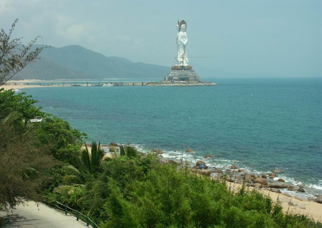 1993年中國(guó)國(guó)務(wù)院宗教局和海南人民政府批準(zhǔn)興建南山寺,并在寺前的海中塑108米高之觀音圣像。此像由海南三亞南海海上觀音功德基金會(huì)發(fā)心敬建,三尊化一體,巍峨壯觀,實(shí)乃世界造像之最。敬造工程因其規(guī)模宏偉、意義殊勝、佛理底蘊(yùn)豐富,被譽(yù)為“世界級(jí)、世紀(jì)級(jí)”的佛事工程。中國(guó)佛教協(xié)會(huì)趙樸初會(huì)長(zhǎng)欣然為圣像題名——“南海海上觀音”。