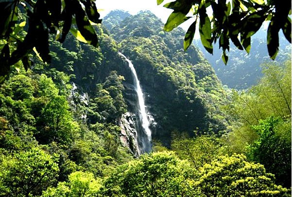 太平山瀑布是由其獨具一色而聞名,其水源來自太平山頂?shù)墓拍经h(huán)抱的平湖,清泉順山勢往下流,到絕壁處便飛瀉直下,先是瀉向一丈有余巨石上,濺起一簇簇如珠似玉的水花,鳴聲如雷,回蕩山谷。瀑布沿著巨石折古而行,流入一個大巖池,環(huán)池旋轉(zhuǎn)后,又沿石縫折跌而下,形成二級飛瀑,水流又沿石入池,漫過池沿而下流,到斜壁處飛瀉入深潭。形成三級瀑布,構(gòu)成太平山的飛瀑奇觀。