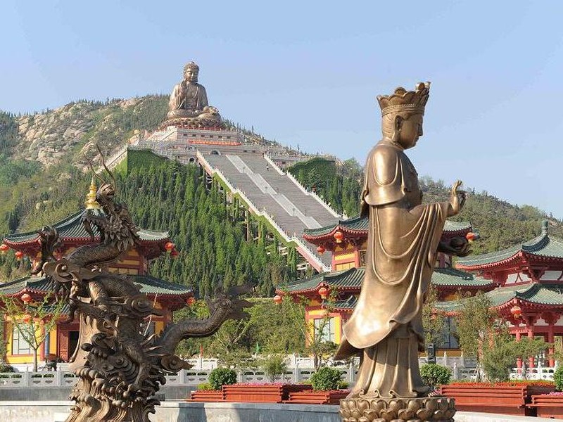 釋迦牟尼坐佛造像,選材錫青銅鑄造,大佛高38.66米,重380噸。由232件佛體、108塊蓮花瓣、302個發(fā)髻、共642塊,錫青銅鑄件組合而成,堪稱目前世界第一大銅鑄佛。大佛右手作“施無畏印”,左手作“施與愿印”, 版權(quán)所有聊城聊之旅旅行社有限公司,轉(zhuǎn)載必究!表示佛為眾生拔除苦難,給予幸福。蓮花座下建有功德堂、萬佛殿和佛教歷史博物館。萬佛殿內(nèi)陳列著9999尊造型逼真,栩栩如生的金銅佛像,與大坐佛共同構(gòu)成了萬尊佛像的宏大陣容,佛教歷史博物館內(nèi)展示了佛教文化興起興盛的歷史記載,館內(nèi)陳列展出了釋迦牟尼佛舍利等數(shù)十件文物和佛教文化藝術(shù)珍品。南山大佛熔古今中外佛像鑄造藝術(shù)的精華,使古老的青銅鑄造藝術(shù)和現(xiàn)代科技成果于一體,展現(xiàn)了佛教文化和現(xiàn)代文明的完美結(jié)合。