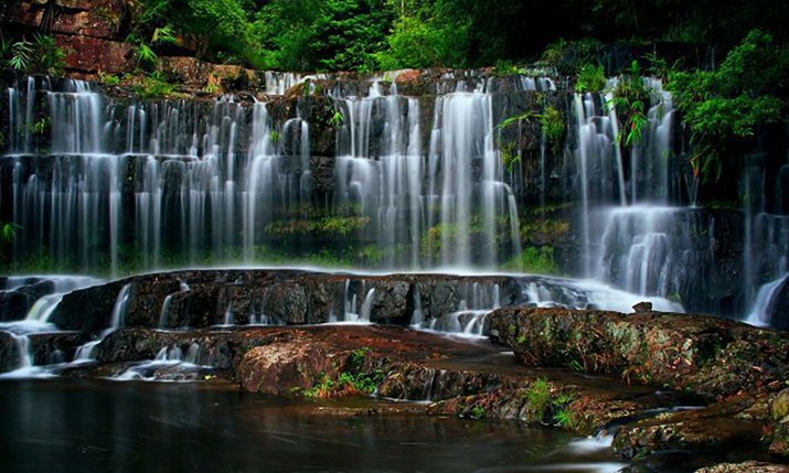 九龍瀑位于湖北省鄖縣大柳鄉(xiāng)余糧村一組到南化塘鎮(zhèn)青巖村七組之間群山之中,方圓十幾公里人跡罕至。九龍瀑分九疊傾瀉而下,一疊一潭,九疊九潭,氣勢(shì)雄壯,曲折多姿。這一著名的九龍瀑,倘在大雨之后,奔騰咆哮,聲如雷鳴,襯托在翠壁丹巖之上,宛如九條白龍,一條接一條地從天而降,景色十分壯觀。