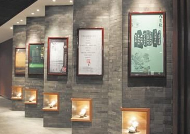 有的展廳設(shè)開放陳列區(qū)。茶萃廳陳列了綠茶、紅茶、烏龍茶、白茶、黃茶、黑茶六大茶類及再加工茶等共三百余個茶樣實物,被分門別類地安放在圓柱狀茶樹形臺面上,同時配有相應(yīng)按鈕。只要觀眾戴上耳機,點擊標本旁的按鈕,就會有一個娓娓動聽的聲音介紹相關(guān)的茶葉知識。同時在開放區(qū)還陳列著各種緊壓茶,有金瓜茶、筍殼茶、七子餅茶、方磚茶、茯磚茶等等,小的直徑不過一、二厘米,大的直徑竟超過一米。只要觀眾有興趣,就可以用手去觸摸,甚至可以用嗅覺去感受它的香味。