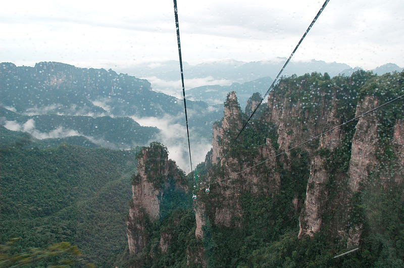 天門山山頂森林觀光纜車,纜車以天門山主峰云夢仙頂為起點,以天門山寺前櫻桃灣廣場為終點,總長度為800米,單程運行約10分鐘,為無遮蓋的雙人吊椅式,每小時運力可達600人。