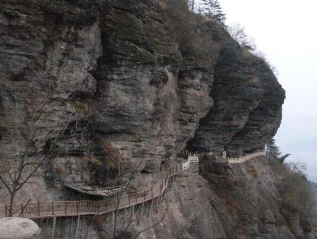 沿三層巖酷似“巴蜀棧道”的百余米山體自然凹槽修建而成,內(nèi)置《西游記》、《八仙過海》、《七仙女》、《牛郎織女》等神話傳說故事群塑。人物與其他塑像造型逼真動人,栩栩如生,令游者如置神話中。