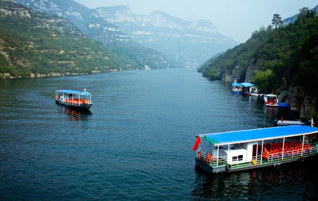 為青天河景區(qū)之精華。既有一川碧水之靈秀,又具幽谷深峽之奇觀,其兩岸林泉之美 ,峰巒之秀、洞壑之深、煙霞之勝實(shí)屬罕見(jiàn),故有 “ 北方三峽 ” 、 “ 桂林山水 ” 之美譽(yù)。大泉湖長(zhǎng) 7.5公里,寬80 — 100米,水深60余米,呈現(xiàn)出峽谷一線(xiàn)青天,煙波浩淼,巍巍壯觀之景色,湖水主要來(lái)源于雄冠 “ 華夏第一泉 ” 的三姑泉。大泉湖中段十分酷似長(zhǎng)江三峽中的巫峽,人稱(chēng) “ 北方三峽 ” 。長(zhǎng)江三峽以 “ 山高、水險(xiǎn)、湍急 ” 而聞名天下,而 “ 北方三峽 ” 則以 “ 水清、水靜 ” 而聞名。乘船途經(jīng)此段, “ 兩岸猿聲啼不住,輕舟已過(guò)萬(wàn)重山 ” 的感覺(jué)油然而生。有人說(shuō),青天河過(guò)于寧?kù)o與矜持。的確,她沒(méi)有三峽的桀驁與狂放,但更多了一份三峽所沒(méi)有的輕柔與內(nèi)秀, “ 云青青兮欲雨,水澹澹兮生煙 ” , “ 山得水而活,得草木而華,得煙云而秀媚 ” ,可見(jiàn)明山秀水造就了這仙境般的美景。大泉湖游覽區(qū)不僅自然景觀惟妙惟肖,形態(tài)逼真,而且在這永不褪色的青山綠水間,還流傳著許多歷史典故和神話(huà)傳說(shuō),常讓人流連忘返,尋蹤追跡。主要景點(diǎn)有:九曲澗、世界獨(dú)一無(wú)二的天然長(zhǎng)城、三娘教子、臥鷹巖、駱駝峰、立駝峰、夢(mèng)筆生花、睡美人、百鳥(niǎo)巢、石榴峰、鯨魚(yú)灣、佛手巖等等。