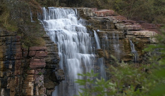 16.紅石峽景區(qū)集秀、幽、雄、險、于一身,泉、瀑、溪、潭于一谷。有“盆景峽谷”的美譽(yù)。