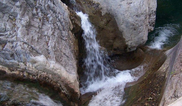 潭瀑峽地處云臺(tái)山北部略偏西,是主要河流子房河的一個(gè)源頭。溝長(zhǎng)1270米,南北走向。溝東面,峭壁聳翠,基巖裸體。