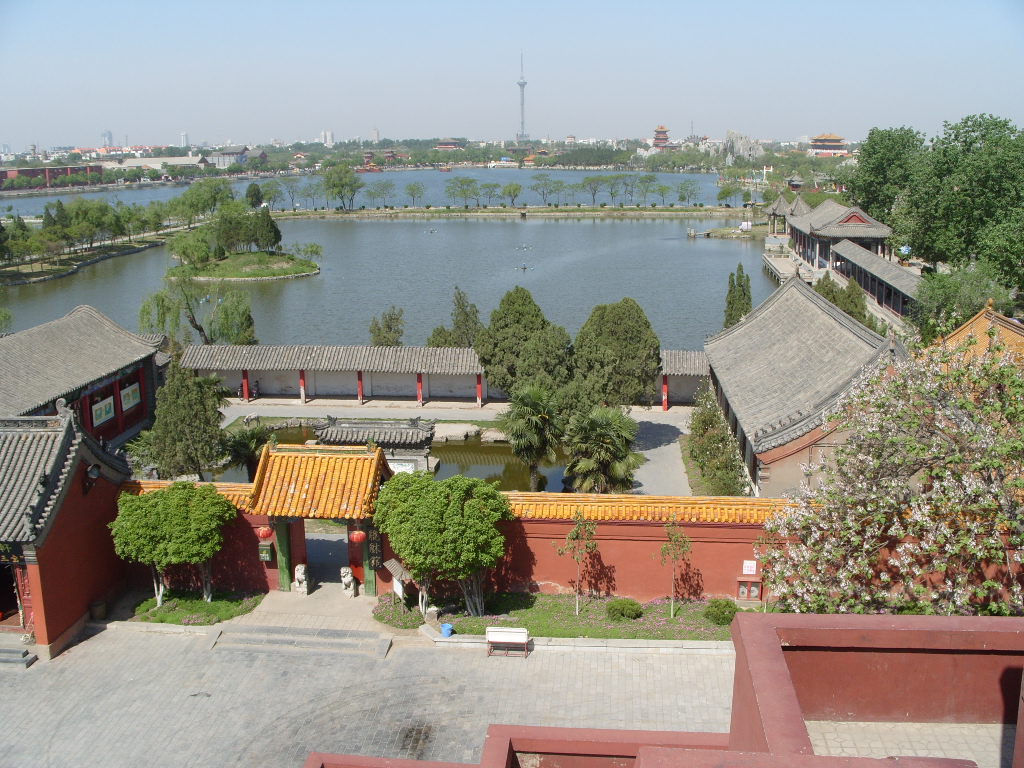 龍亭坐北朝南,高踞在臺基之上。從地面到大殿有72級臺階。臺階中間是雕有云龍圖案的石階。登上平臺,四周有石欄圍繞。大殿是木結(jié)構(gòu),重檐歇山式建筑,很壯觀。游人登上平臺,入殿觀看陳列的文物后,多在石欄前眺望開封古城景色。版權(quán)所有山東聊城聊之旅國際旅行社有限公司,轉(zhuǎn)載必究!龍亭前有一條筆直的大道,道旁有兩個(gè)東西對峙的湖,東為潘湖,西為楊湖。傳說,東湖為宋朝“太師”潘仁美的府第,他陷害忠良,是個(gè)奸臣,宅院里的湖水是渾的;西湖為宋朝抗遼名將楊業(yè)的府第,他舍身救國,是個(gè)忠臣,宅院里的湖水是清的。這個(gè)說法沒有科學(xué)根據(jù),但反映了人們對忠奸的態(tài)度和感情?,F(xiàn)在龍亭,潘、楊兩湖,以及龍亭后面的假山花園,都辟為龍亭公園。