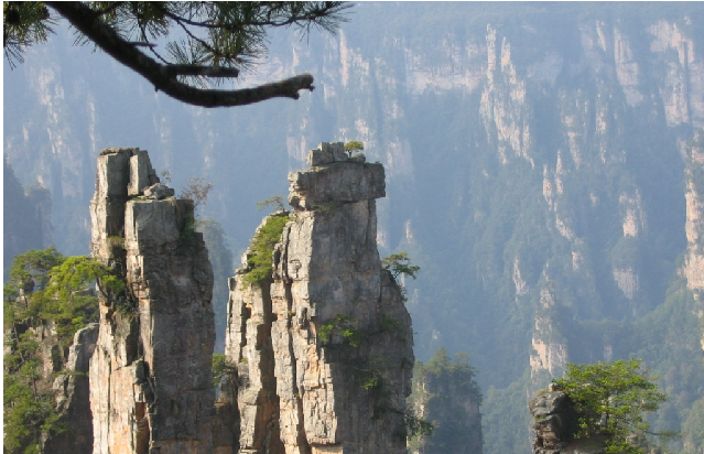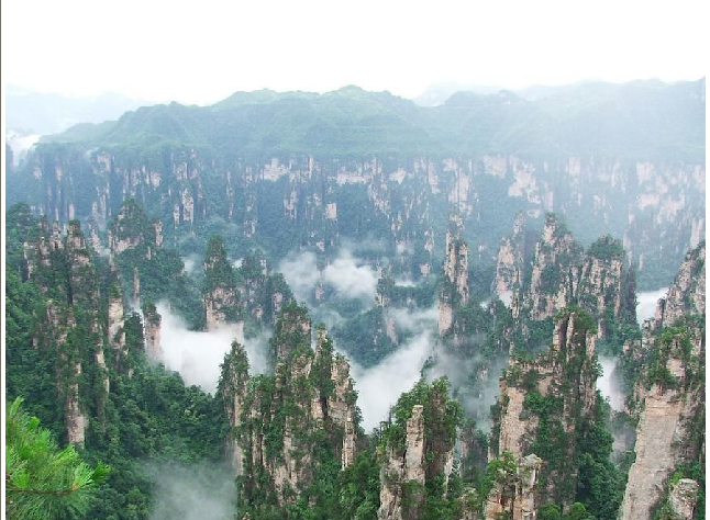 張家界以其得天獨厚的旅游資源聞名于世。以中國第一個國家級森林公園張家界和天子山、索溪峪兩個自然保護區(qū)組成的武陵源風景區(qū)面積達369平方公里,區(qū)內(nèi)以世界罕見的石英砂巖峰林峽谷地貌為主體,集桂林之秀、黃山之奇、華山之險、泰山之雄于一體,藏賂、橋、洞、湖、瀑于一身,有“擴大的盆景、縮小的仙山”之美稱。