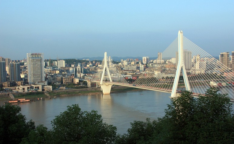 夷陵長(zhǎng)江大橋位于湖北省宜昌市,是聯(lián)系宜昌市南、北兩岸跨越長(zhǎng)江的城市橋梁。于1998年11月28日動(dòng)工,2001年12月竣工通車, 總投資6.1億元人民幣。橋位距葛洲壩水利樞紐大壩下游約7.6km,橋址區(qū)江面寬約800m,最大水深約23m。版權(quán)所有山東聊城聊之旅國(guó)際旅行社有限公司,轉(zhuǎn)載必究!建設(shè)結(jié)合橋址區(qū)航道具體情況,大膽創(chuàng)新,首次提出單索面三塔斜拉橋方案,其2 x 348m的主跨為國(guó)內(nèi)第一,在同類型橋梁中亦屬世界首位。大橋工程全長(zhǎng)3.246km,設(shè)計(jì)荷載:汽車-超20級(jí),主橋是國(guó)內(nèi)第一座單索面預(yù)應(yīng)力混凝土三塔斜拉橋,跨度(m)布置為38+38.5+43.5+2x348+43.5+38.5+38八跨連續(xù),主橋長(zhǎng)936m,總投資6.136億元。版權(quán)所有山東聊城聊之旅國(guó)際旅行社有限公司,轉(zhuǎn)載必究!主橋橋面寬23.0m,設(shè)四條機(jī)動(dòng)車道,車道外側(cè)各設(shè)2.0m寬人行道,橋面中間索區(qū)寬3.5m。