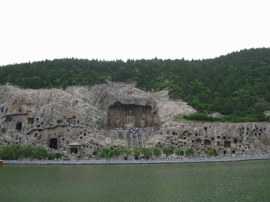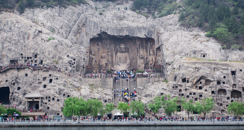 龍門石窟是中國(guó)三大石窟之一(另外兩大石窟為:山西云岡石窟、甘肅敦煌莫高窟),位于洛陽市城南6公里的伊闕峽谷,這里香山和龍門山兩山對(duì)峙,伊河水從中穿流而過,古稱“伊闕隋煬帝遷都洛陽后,將把皇宮的正門正對(duì)伊闕,從此,伊闕便被人們習(xí)慣的稱為龍門。龍門自古為險(xiǎn)要關(guān)隘,交通要沖,向?yàn)楸冶貭?zhēng)之地。因山清水秀,環(huán)境清幽,氣候宜人,被列入洛陽八大景之冠,唐代大詩人白居易曾說:“洛都四郊,山水之勝,龍門首焉”,此處素為文人墨客觀游勝地;又因石質(zhì)優(yōu)良,宜于雕刻,故而古人擇此而建石窟。這里青山綠水、萬象生輝,伊河兩岸東西山崖壁上的窟龕星羅棋布、密如蜂房。