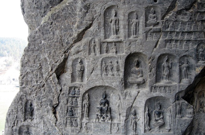 門石窟是中國(guó)石刻藝術(shù)寶庫之一,位于河南省洛陽市南郊伊河兩岸的龍門山與香山上。開鑿于北魏孝文帝遷都洛陽之際,之后歷經(jīng)東魏、西魏、北齊、隋、唐、五代的營(yíng)造,南北長(zhǎng)達(dá)1公里,至今存有窟龕2345個(gè),造像10萬余尊,碑刻題記2800余品。其中“龍門二十品”是書法魏碑精華,褚遂良所書的“伊闕佛龕之碑”則是初唐楷書藝術(shù)的典范。龍門石窟延續(xù)時(shí)間長(zhǎng),跨越朝代多,以大量的實(shí)物形象和文字資料從不同側(cè)面反映了中國(guó)古代政治、經(jīng)濟(jì)、宗教、文化等許多領(lǐng)域的發(fā)展變化,對(duì)中國(guó)石窟藝術(shù)的創(chuàng)新與發(fā)展做出了重大貢獻(xiàn)。2000年入選世界文化遺產(chǎn)。