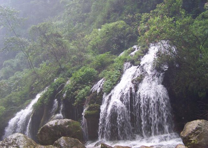 龍亭瀑布由文、武兩瀑構成,文瀑一級直下落差136米,為福建省單級落差最高的瀑布;武瀑分兩級而下,落差135米。瀑布周圍還有將軍印、文筆架、巖峰和金獅把口、玉兔飛躍、將軍拜印、仙翁坐山、玉象峰、猴子洞、龍洞等10余個景點。版權所有山東聊城聊之旅國際旅行社有限公司,轉載必究!沿溪下行約1公里,從南兜乘竹筏順流而下, 經(jīng)“十曲十二灘”,歷2個小時到渡頭村,一路青山碧水,沿溪可瀏覽唐僧西拜、達摩面壁、金龜戲鱉、文廣斷船、將軍帽、三疊石等36個石景,惟妙惟肖。在下游渡頭村有兩片相距不遠,總面積250畝楓香林,約有1100多棵楓樹。秋末冬初,楓葉黃里秀紅,猶如緋云停駐;在兩片楓香林之間的間隔地帶有17叢古榕群,樹齡最長者已有800多年,其中一株“榕樹王”,樹干周長12.6米,冠幅直徑51米,高30米,樹干中空,有7個洞口,洞內(nèi)可容數(shù)人。版權所有山東聊城聊之旅國際旅行社有限公司,轉載必究!據(jù)說這是全球緯度最北的一片古榕林;近處百畝桃樹林,春暖花開,景色更佳;溪畔成片荻花灘,“遠似浮云近似煙”,春夏綠葉如菌,秋冬白花遍野。