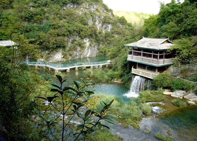 天河潭風(fēng)景區(qū)位于貴陽市花溪區(qū)石板鎮(zhèn)境內(nèi),距貴陽市24公里內(nèi)兼具黃果樹瀑布之雄、龍宮之奇與花溪之秀,集飛瀑、清泉、深潭、奇石、怪洞與天生石橋于一身,渾然天成;農(nóng)舍水車,小橋流水,野趣盎然,清幽宜人。