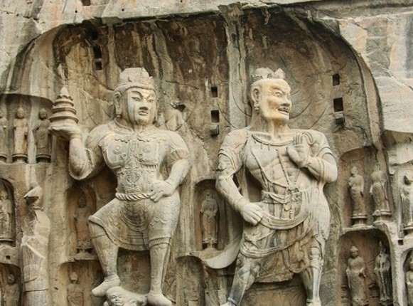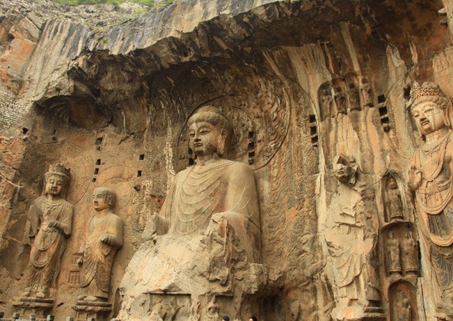 奉先寺,原名大盧舍那像窟,版權(quán)所有山東聊城聊之旅國際旅行社有限公司,轉(zhuǎn)載必究!位于洛陽市龍門石窟西山南部,始雕年代說法不一,有說是唐代咸亨三年(672年)開始雕鑿,至唐代上元二年(675年)完成,是龍門石窟中規(guī)模最大、藝術(shù)精美、最具有代表性的大龕。版權(quán)所有山東聊城聊之旅國際旅行社有限公司,轉(zhuǎn)載必究!奉先寺南北寬約34米,東西深約36米,置于9米寬的三道臺階之上,龕雕一佛、二弟子、二脅侍菩薩、二天王及力士等十一尊大像。奉先寺是龍門石窟中規(guī)模最大、最具有代表性的露天佛龕,形態(tài)各異、刻畫傳神的造像顯示了盛唐雕塑藝術(shù)的高度成就,成為石雕藝術(shù)史上的奇觀。