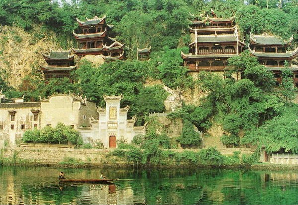 烏江是貴州第一大河,發(fā)源于威寧草海,由西向東橫貫黔東北后匯入長(zhǎng)江.烏江下游及部分支流的溶蝕構(gòu)造地貌為峽谷區(qū),有烏江關(guān)、虎跳峽、鷹愁峽等險(xiǎn)峻峽谷,兩岸碧峰聳峙,有眾多奇特的山體、峰叢、怪石、穿洞、飛瀑,形成烏江沿岸七峽六十景。