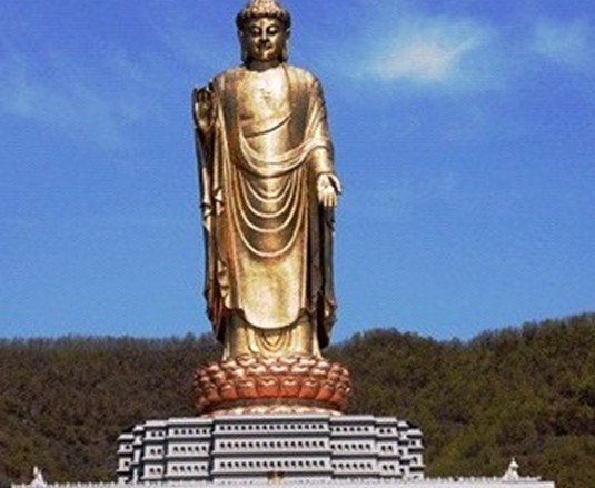 奇石飛瀑云海,侃世界大金佛第一。