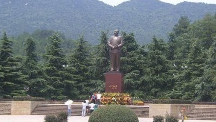 毛主席的銅像矗立在韶山沖廣場。這里背襯韶峰,是韶山沖的中心,對面就是毛氏宗祠和毛澤東紀念館。
