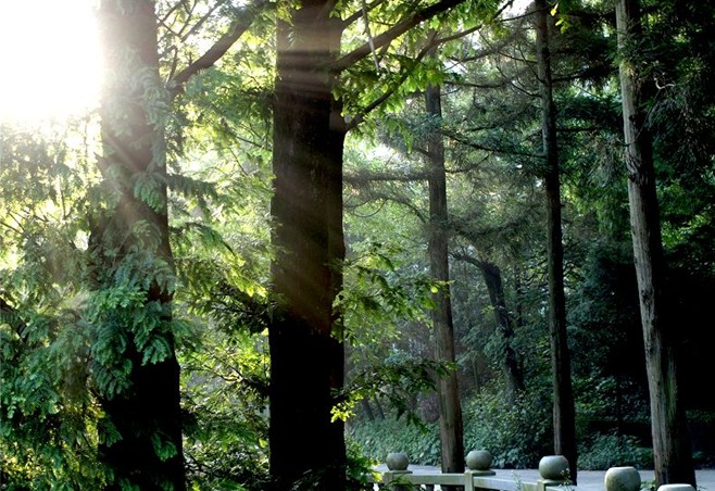 花徑公園位于牯嶺街西南2公里處的如琴湖畔。有公路抵達(dá),沿大林路步行,順路可見冰川遺跡——冰桌巨石,又叫飛來石?;◤较鄠魇翘拼娙税拙右自佋姟洞罅炙绿一ā返牡胤?。白居易被貶任江洲(九江)司馬時,于公元816年登廬山游覽。時值暮春,山下桃花已落而此處卻桃花盛開,白居易有感吟詩一首:“人間四月芳菲盡,山寺桃花始盛開。長恨春歸無覓處?!?/p>