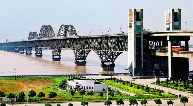 九江長江大橋于1993年1月16日建成,是京九鐵路和合九鐵路的“天塹通途”,為雙層雙線鐵路、公路兩用橋,鐵路橋長7675米,公路橋長4460米,其中江上正橋長1806米,10個橋墩,11孔鋼梁,不論長度和跨度為160米的普通鋼桁梁外,主航道為三孔剛性桁、柔性拱,桁高16米,跨度為180米,中間一孔最大跨度達(dá)216米,最大知高32米。采用十五錳鋇釩氮高強(qiáng)度低合金鋼種制造,鋼板最大厚度為56毫米,并用直徑27毫米的高強(qiáng)度螺栓鉚接鋼梁桿件。目前九江大橋不僅是中國,版權(quán)所有山東聊城聊之旅國際旅行社有限公司,轉(zhuǎn)載必究!而且是世界最長的鐵路、公路兩用的鋼桁梁大橋,既是我國南北交通的大動脈,又是九江最引人注目的新旅游景點 。
