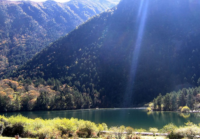 野人海——中國(guó)情海木格措漢名野人海,又名大海子,是川西北最大的高山湖泊之一。水域面積近4平方公里,水深逾70米,海拔3700米。因水源大部分來(lái)自身后女?huà)z雪山的融化積雪水,因而能見(jiàn)度很高,一般為6-10米左右。木格措四周被群山、森林、草原環(huán)抱,紅海、黑海、白海等幾十個(gè)個(gè)小海子圍繞著她,猶如眾星捧月。木格措出海口左面的山峰名犀牛峰,月明星稀的夜晚,如水的月光潑灑在山峰上,那柄朝天的犀牛角會(huì)發(fā)出銀色的寒光。木格措出海口右面山上有“臥虎觀月”的景觀,真如一只臥虎望著天上,虎視眈眈地乜著犀牛峰。
