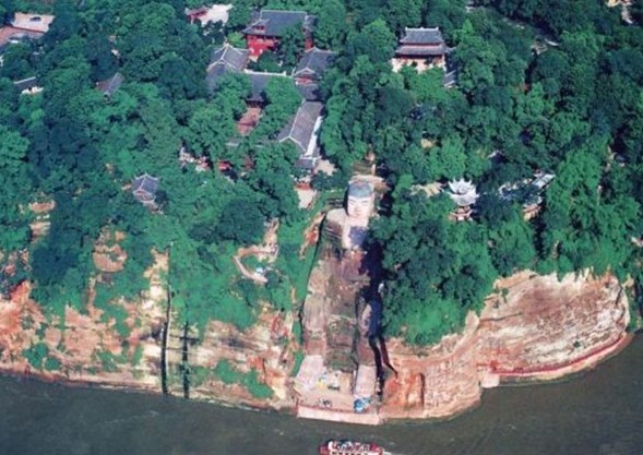 在風景壯麗的四川樂山,在大渡河、青衣江、岷江的合流處,端然正坐著一座高達七十多米的佛像,它比號稱世界第一大雕刻的阿富汗帕米央大佛站像,還高二十多米。在樂山大佛頭的螺髻上面可以容十多人圍坐,耳朵空隙可并立兩人,雙足相距近十丈,兩個人接臥也不及大佛的一個腳趾長,一個人站立腳旁也未能高出腳面。隔江遙望,才能觀看到大佛的全貌。