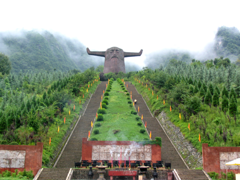 神農(nóng)架據(jù)傳是華夏始祖、神農(nóng)炎帝在此搭架采藥、療民疾矢的地方。他在此“架木為梯,以助攀援”,“架木為屋,以避風(fēng)雨”,最后“架木為壇,跨鶴升天”。神農(nóng)炎帝是華夏文明開創(chuàng)者之一,后人將其豐功偉績列陳有八:訓(xùn)牛以耕,焦尾五弦,積麻衣革,陶石木具,首創(chuàng)農(nóng)耕,搭架采藥,日中為市,穿井灌溉。為緬懷祖先,頌其偉業(yè),林區(qū)人民政府于1997年開始在神農(nóng)架主峰南麓小當陽興建神農(nóng)祭壇一座,塑其雕像于群山之中,但見牛首人身的神農(nóng)氏雙目微閉,似思似眠,神農(nóng)塑像與千年古樸相擁而立,景致渾宏,氣宇不凡,蔚為壯觀。