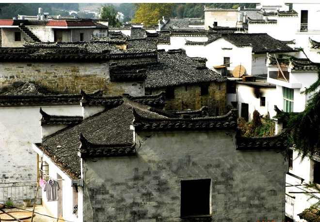 在江西省婺源縣曉起村,據(jù)說是江澤民的祖居地,是典型的徽派古生態(tài)民俗文化村,既有周莊的小橋流水,又有香格里拉的寧靜悠遠(yuǎn),更有古樸純實(shí)的民風(fēng)民情。婺源曉起坐落于婺源縣城東,距離縣城約二十公里,是段莘水和曉起水交合處,始建于公元787年。如今的曉起,被評為國家級農(nóng)業(yè)生態(tài)示范村。曉起有上、下曉起之分。村屋多為清代建筑,風(fēng)格各具特色,村中小巷均鋪青石,曲曲折折,回環(huán)如棋局。主要景觀有雙亭聳峙、楓樟流蔭、進(jìn)士第、大夫第、榮祿第、江氏祠堂、磚雕門罩、養(yǎng)生河與古濯臺等。“古樹高低屋,斜陽遠(yuǎn)近山,林梢煙似帶,村外水如環(huán)”。