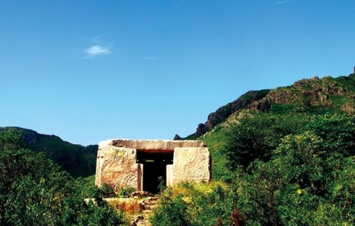 遼太祖陵位于赤峰市巴林左旗哈達英格蘇木石房子村大布拉格山谷中,這里相傳為契丹始祖發(fā)祥之地,遼太祖耶律阿保機駕崩后葬于此。位于巴林左旗石房子村西北。為守護和祭祀遼太祖陵墓的奉陵邑,陵在城西北約2公里的山谷中。城垣分為內(nèi)外兩城,東南向,外城周圍約2公里,殘墻高約6米,4個門址尚存,東門和北門還可見到甕城痕跡。內(nèi)城只筑有南墻,高略同于外城墻,墻上正中開設(shè)大門,門內(nèi)有幾處高大的享殿、祭殿基址。西北隅現(xiàn)存有石房子一座,花崗巖大石板構(gòu)筑,高3.5米,寬6.7米,進深4.8米,全屋只用7塊大石板,這種結(jié)構(gòu)的石室,為中國古代建筑物中所少見,也是遼代建造石室中僅存的一座。內(nèi)城南門外有直通至外城南門的大街,寬約40余米。兩旁有官廨、膳房、作坊及兵卒住所等建筑遺址。南城門外的大道兩側(cè)及其西面,有兩組小型建筑群的基址,用石塊壘砌房基,布局大致整齊,為守陵戶居住區(qū),面積大于城址。為全國重點文物保護單位。