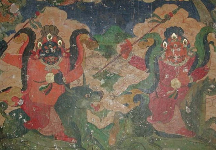 惡龍?zhí)稍谘蠢锘杳赃^去,三姐妹一看惡龍還有一個(gè)頭,知它不能死,就用各種神法治惡龍于死地,但這些法子都不頂用,三姐妹著了急,如果惡龍醒來(lái),打到天宮去,我們姐妹就更吃罪不起了。正在這時(shí),托塔天王巡天回宮交旨,路過這里,三姐妹趕緊迎了上去,說(shuō)明事情根由,天王說(shuō):"惡龍作孽累累,罪刻萬(wàn)死!它神通廣大,你們哪能是它的對(duì)手?我助你們一臂之力,你等需在惡龍的頭、腰、尾各筑一塔,便大功告成。"說(shuō)完,默念咒語(yǔ),吐三口神氣,那惡龍乖乖地翻了白。三姐妹謝過天王便忙于去筑塔。天王說(shuō):"一個(gè)時(shí)辰,必須在天鼓響之前筑完。"說(shuō)罷駕起祥云回天宮交旨。