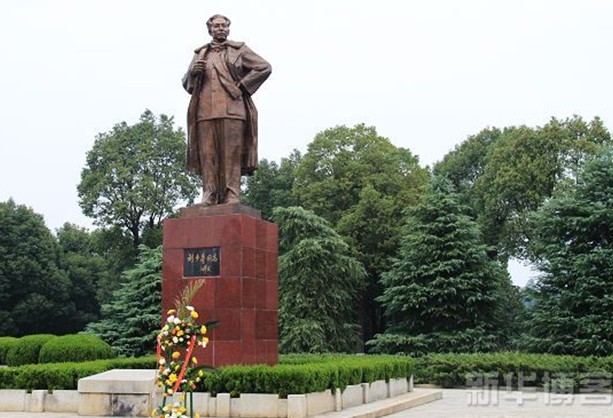 由中國美術(shù)館館長、著名雕塑家劉開渠及中國軍事博物館雕塑家程允賢設(shè)計的劉少奇銅像建于紀(jì)念館西南約200米的山包上,為站立式全身像,底座高3.1米,像高4米,總高7.1米,上鐫陳云題詞:“向堅定的共產(chǎn)主義戰(zhàn)士劉少奇同志學(xué)習(xí)”。
