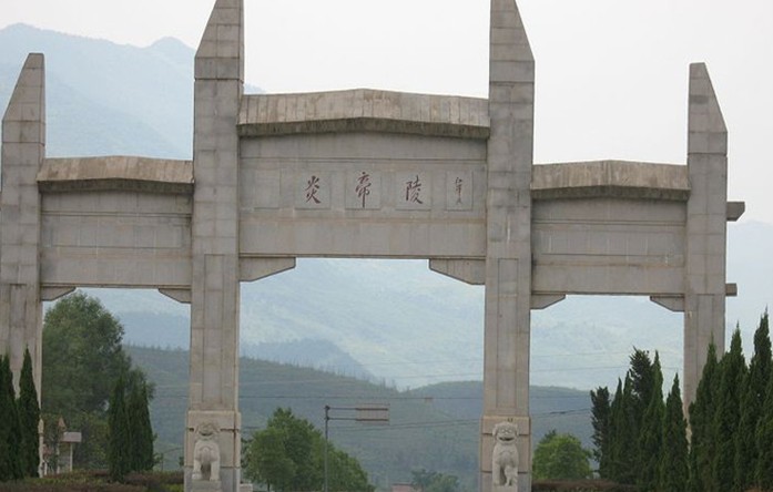 高18.66米,主體橫跨22米,系四柱三間式結(jié)構(gòu),正面刻原國家主席江澤民手書“炎帝陵”;背面刻陳云同志題詞“炎黃子孫、不忘始祖”。