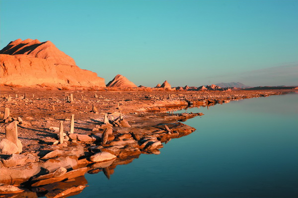 柴達木盆地,有許多神奇的人文景觀和自然景觀,其中最神秘、最難解的是托素湖畔的三個管狀物。 從懷頭他鄉(xiāng)向南邁進,進入荒漠,穿越沼澤,繞過數(shù)座小沙丘,翻過幾道大沙梁,幾經(jīng)艱辛,就能看見托素湖。湖的東北角有一座白山,當?shù)厝私兴坠健I衩氐墓軤钗锞驮谶@座山的腳下。