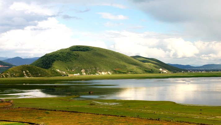 香格里拉納帕海位于中甸縣城西北部,距縣城8公里。保護(hù)區(qū)面積3125平方公里、海拔3266米、湖泊積水面積660平方公里。保護(hù)區(qū)地勢平坦,三面環(huán)山,冬春季節(jié),山嶺積雪。那曲河、奶子河等十余條河彎彎曲曲,流經(jīng)草源注入 納帕海。海西北面的辛苦雅拉雪女山麓有天然落水洞九處,洪水經(jīng)過溶洞,從尼西湯滿河排出、流入金沙江。每逢雨季、湖面增高、到旱季洪水排出、湖面縮小、大部分地區(qū)成為沼澤和草甸。