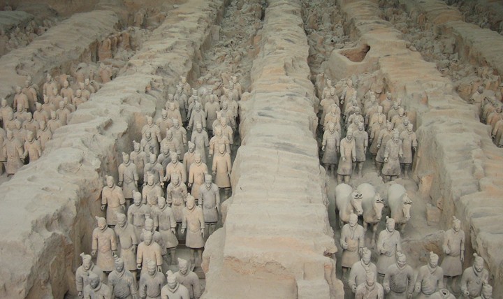 有人認(rèn)為,秦始皇陵實(shí)質(zhì)上是按古代禮制“事死如事生”的要求特意設(shè)計(jì)的。因?yàn)榍厥蓟始次缓?,用了大部分的精力和時(shí)間進(jìn)行統(tǒng)一全國(guó)的戰(zhàn)爭(zhēng)。當(dāng)時(shí)他率領(lǐng)千軍萬(wàn)馬南征北戰(zhàn),從而并吞了六國(guó),統(tǒng)一了天下。為了顯示他生前的功績(jī),以軍隊(duì)的形式來(lái)陪葬似乎是一種必然。