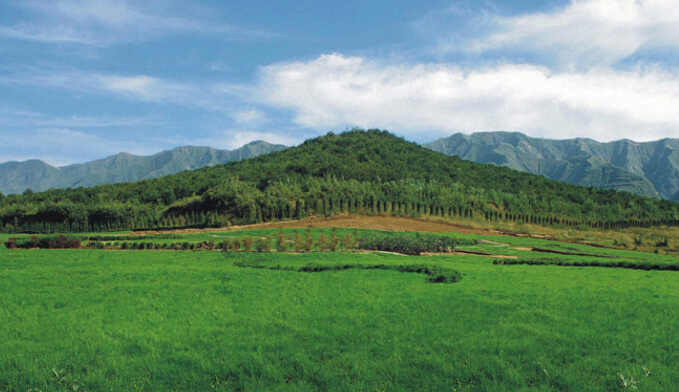 其次,陵墓位置的選擇也與當(dāng)時(shí)“依山造陵”的觀念相關(guān)。大約自春秋時(shí)代開(kāi)始,各諸侯國(guó)國(guó)君相繼興起了“依山造陵”的風(fēng)氣。許多國(guó)君墓不是背山面河,就是面對(duì)視野開(kāi)闊的平原,甚至有的國(guó)君墓干脆建在山顛之上,以顯示生前的崇高地位和皇權(quán)的威嚴(yán)。春秋時(shí)期的秦公墓也受這種觀念的影響,有的“葬西山”,有的葬在陵山附近。戰(zhàn)國(guó)時(shí)期的秦公墓依然承襲了“依山造陵”的典范,而秦始皇陵墓造在驪山之阿也完全符合“依山造陵”的傳統(tǒng)觀念。它背靠驪山、面向渭水,而且這一帶有著優(yōu)美的自然環(huán)境。整個(gè)驪山唯有臨潼縣東至馬額這一段山脈海拔較高,山勢(shì)起伏,層巒疊幛。從渭河北岸遠(yuǎn)遠(yuǎn)眺去,這段山脈左右對(duì)稱,似一巨大的屏風(fēng)立于始皇陵后,站在陵頂南望,這段山脈又呈弧形,陵位于驪山峰巒環(huán)抱之中,與整個(gè)驪山渾然一體。