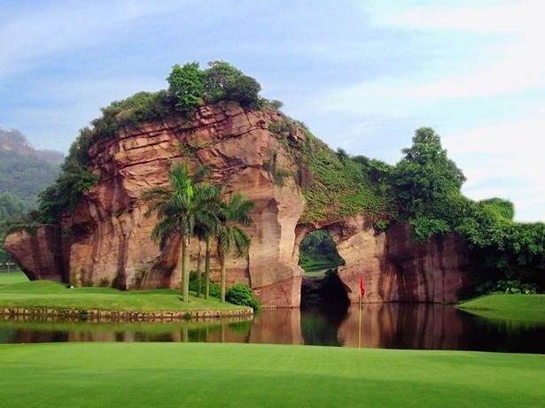 番禺蓮花山是廣東省重點(diǎn)風(fēng)景名勝區(qū),位于番禺市東部珠江口獅子河畔。蓮花山由48座紅色砂巖低山組成,海拔最高為108米,占地2.54平方公里。其中有座麒麟峰,因峰頂上有一塊酷似蓮花的巖石,所以后人把這座山稱為蓮花山。蓮花山在古時(shí)候是一個(gè)石礦場,經(jīng)幾百年的采礦,蓮花山上或懸崖峭壁,或奇巖異洞,或嵯峨幽邃,或雄偉挺拔,形成了天然與人工相結(jié)合的獨(dú)特景觀,堪稱嶺南一秀。