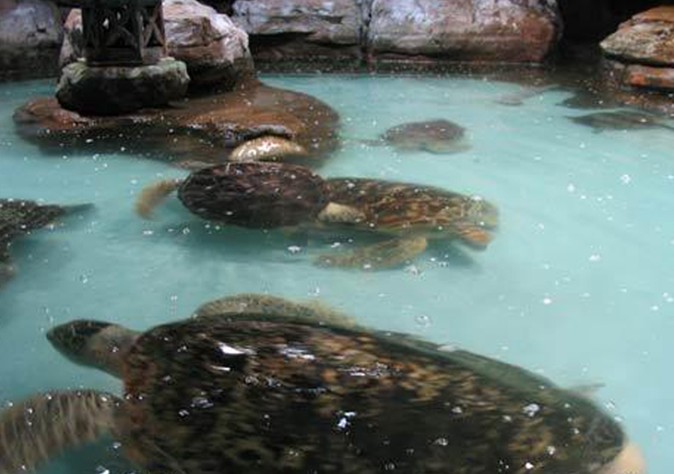 全新推出:“魚樂新天地”的游樂項目,讓游客親手投喂海豹、海象、射水魚、大海龜、福鱷等海洋動物,增進觀眾與海洋精靈動物零距離接觸的機會,樂趣多多。當您在海豹池邊把小魚投向海豹時,幾只小海豹飛身爭搶,水花四濺,有趣極了;身形龐大的海象則食相驚人,當您把它愛吃的鯖魚拋進水中,它迅速兇猛地竄起來,“撲通”一聲巨響,浪花沖天而起,瞬間已把食物吸進腹中,驚險刺激;那“水中神槍手”射水魚更是彈無虛發(fā),您把小昆蟲放在離水面一米高的果實上,它就會瞄準目標,“突”、“突”射出一條水柱擊中昆蟲落水美滋滋吞下,令人拍手稱奇。