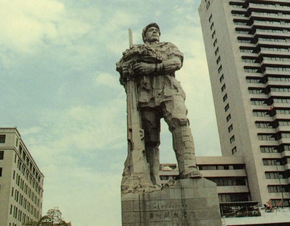 廣州解放紀(jì)念像立于海珠場中央。是廣州市人民政府為紀(jì)念廣州解放于1959年塑造的,作者詩尹積昌。 1969年“文化大革命”期間擬在此處建毛澤東塑像,將該解放紀(jì)念像拆除現(xiàn)廣州解放紀(jì)念像由潘鶴、梁明誠于1979年重新設(shè)計塑造,1980年建成。該紀(jì)念像于1963年被公布為廣州市文物保護(hù)單位。