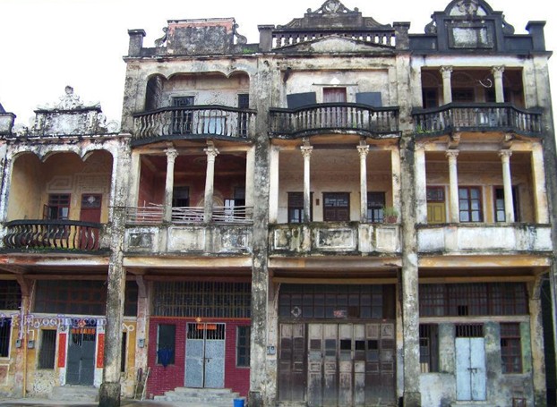 梅家大院(即汀江圩華僑建筑群)位于廣東省臺山市端芬鎮(zhèn)大同河畔,于1931年由當?shù)厝A僑以及僑眷僑屬創(chuàng)建。大院占地面積80畝,108幢二至三層帶騎樓的樓房,呈長方形排列,鱗次櫛比,整齊劃一,中間有40畝專供商販擺賣商品的市場空地,儼如一座小方城,由于當?shù)孛沸展蓶|占了一半以上,故有“梅家大院”之稱。由于始建之初,其規(guī)劃設計是業(yè)主將各自旅居國的風情和建筑特色融入于中華建筑藝術之中。