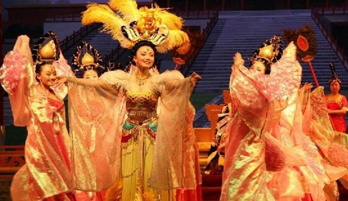 作為我國唐代樂舞的發(fā)祥地, 陜西省歌舞劇院自1982年首次推出我國第一臺古典宮廷樂舞 -《仿唐樂舞》以來,已經(jīng)相繼編創(chuàng)、推出了《唐長安樂舞》、《唐都風(fēng)情》《唐開元伎樂》、《大唐禮樂》、《秦風(fēng)古韻》等唐代樂舞系列劇目。其風(fēng)所及,不僅傾倒了數(shù)百萬海內(nèi)外觀眾,版權(quán)所有山東聊城聊之旅國際旅行社有限公司,轉(zhuǎn)載必究!并催生了《編鐘樂舞》、《龜茲樂舞》與《云崗樂舞》等不同時(shí)代不同風(fēng)格的“樂舞”。 陜西省歌舞劇院20多年來創(chuàng)作演出的唐代樂舞系列,先后到世界上40多個(gè)國家和地區(qū)演出,接待過100多個(gè)國家和地區(qū)的政府首腦,兩萬場演出中使700多萬觀眾及旅游者有幸“夢回唐朝”。這已經(jīng)是陜西省旅游文化的重要組成部分,并成為古城西安旅游的名牌產(chǎn)品。我們衷心期盼《仿唐樂舞》的演出,不僅在視聽方面能夠帶給您美好的想受,更盼望中華民族悠久燦爛的文化能給您留下難忘的回憶。