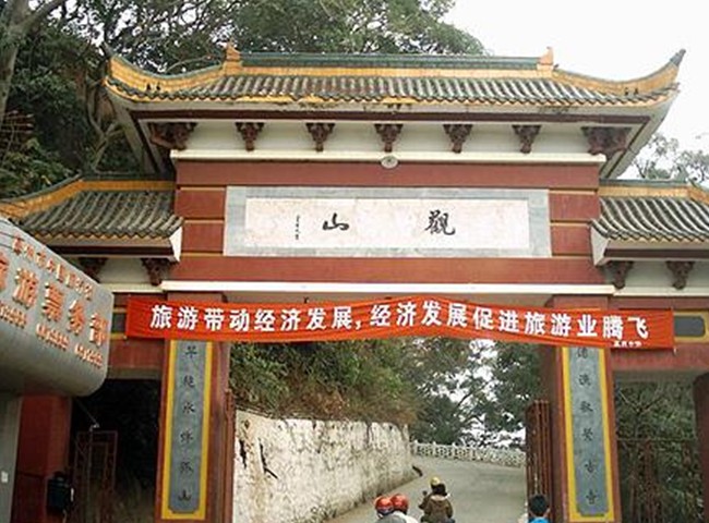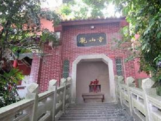 觀山寺群位于高州市之西的觀山上,觀山東臨鑒江,南對(duì)南宮嶺,山清水秀,風(fēng)景迷人。明代以來(lái),這里先后建起了觀山寺、玉泉寺、呂仙殿、潘仙殿、報(bào)德祠等寺廟建筑群。民國(guó)期間,又開(kāi)辟了中山公園,建有中山亭、若虛亭、茂植亭、詠風(fēng)亭、襟江亭、曠怡亭和斷碑亭等建筑,使觀山增添了不少色彩。