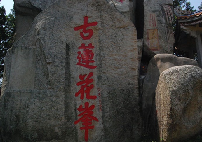 公元一二七八年,南宋民族英雄文天祥率領(lǐng)義軍,追蹤十歲小皇帝趙炳至潮陽(yáng)蓮花峰,在此登峰望帝,眺望茫茫大海,極目尋望帝舟蹤影,帝舟片影無(wú)蹤。山峰是由幾片縱裂的花崗巖石拱圍拼湊而成,從陸上遠(yuǎn)眺儼然若一朵含苞待放的蓮花,從海上觀之,則仿佛是一朵出水芙蓉,故文天祥將該峰命名為“蓮花峰”并刻石。還有許多名人石刻,其中有黑旗軍將領(lǐng)劉永福的草書(shū)“虎”字、書(shū)法家于右任和劉海粟等的題字等。現(xiàn)代作家老舍也在這里題詩(shī)曰:“遙憐信國(guó)此峰頭,水黑云寒望帝舟;今日紅旗明碧海,神州兒女競(jìng)風(fēng)流。”