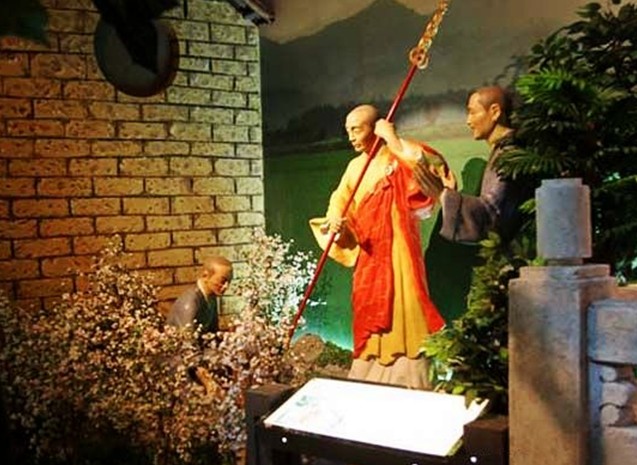《六祖惠能生平故事陳列》陳列形式設(shè)計(jì)打破以往圖片加實(shí)物的手段,全部用場(chǎng)景來制作,真實(shí)、形象地展示六祖生平的傳奇故事,使陳列具有地方性、知識(shí)性和趣味性。共制作了場(chǎng)景18個(gè),玻璃鋼彩塑人物圓雕48尊,大型浮雕一組。整個(gè)陳列以背景音樂和燈光映襯營(yíng)造氣氛,取得很好的展示效果。 六祖惠能(公元638—713年)是中國(guó)佛教史上有重要影響的思想家和開一代新風(fēng)的禪宗大師。惠能創(chuàng)立的中國(guó)特色的佛教,成為影響中國(guó)佛教長(zhǎng)達(dá)千多年的中國(guó)禪宗的真正創(chuàng)始人。六祖創(chuàng)立的南宗禪不但成為中國(guó)佛教影響最大、傳播最廣的主流宗教,而且流傳海外,遠(yuǎn)播歐美。