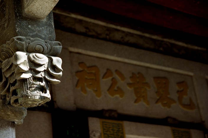 當(dāng)我們走過(guò)古城義安路,來(lái)到鐵巷頭,就可見(jiàn)到己略黃公祠,首先見(jiàn)到祠堂正面外觀,正中為凹斗門(mén)樓,門(mén)首橫額正面陰刻“己略黃公祠”,背面鐫有“孝思維則”,門(mén)樓門(mén)面分布四幅沉刻文字,內(nèi)容為嘉應(yīng)人氏溫仲和的“己略黃公祠頌”和兩幅沉刻圖畫(huà);門(mén)樓馬面坡屋架裝有《封神演義》人物故事連環(huán)畫(huà)幅石雕飾品,這些石雕飾品,人物造型、結(jié)構(gòu)嚴(yán)謹(jǐn)、表情生動(dòng)、過(guò)渡自然,刻劃出古代西周時(shí)期一個(gè)轟轟烈烈的歷史場(chǎng)景。同時(shí),當(dāng)時(shí)工匠根據(jù)結(jié)構(gòu)要求,主受力的梁用浮雕刻,不影響結(jié)構(gòu)受力;其它采用通雕刻,安裝在一起既符合結(jié)構(gòu)要求又適合審美觀賞,充分體現(xiàn)能工巧匠構(gòu)思的巧妙……