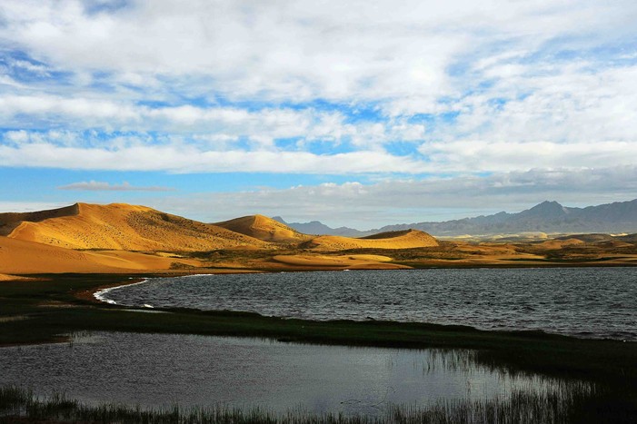 如今,相關(guān)部門在金子海開辟了旅游線路,讓游人滑沙、垂釣、戲水,觀賞高原荒漠的種種自然美景,在潔白蒙古包里品嘗奶茶、羊肉手抓,觀看蒙古族歌舞,了解和體驗民族風(fēng)情,這些都會把游人帶人淳樸、自然之中。金子海,比月牙泉更美的沙漠清泉,不愿你成為樓蘭古國的遺憾。