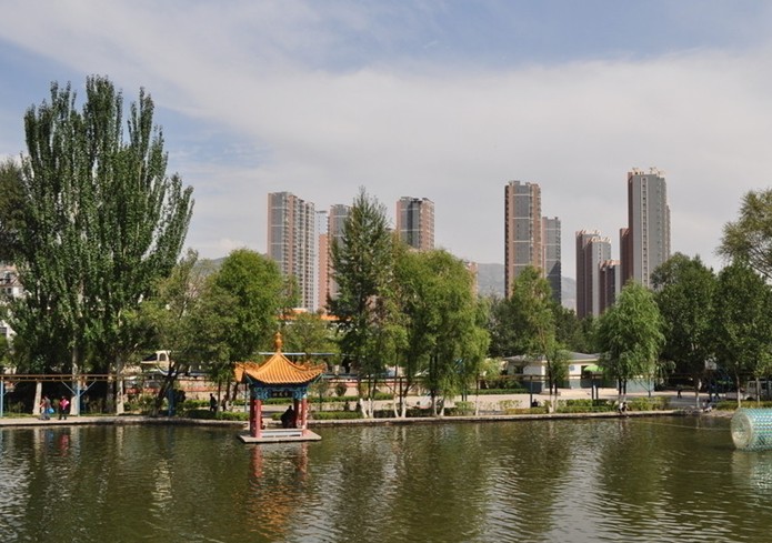 西寧人民公園始建于1959年,位于城西湟水與北川河交匯處南岸。始建時(shí),總面積36公頃,后經(jīng)數(shù)次擴(kuò)建,現(xiàn)占地40余公頃,是西寧市最大的公共游樂公園。園內(nèi)游樂設(shè)施主要有:花卉區(qū)、人工湖、露天劇場(chǎng)、燈光球場(chǎng)、兒童游戲場(chǎng)和餐廳、茶室等游樂觀賞服務(wù)設(shè)施。園區(qū)綠樹成蔭、曲徑回廊、水閣相間、鳥語(yǔ)花香、十分清雅,被稱為“人工繡景”,居西寧新八景之首。