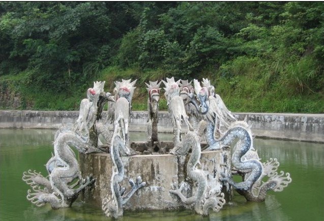 寺廟建筑是九龍山美景的重要組成部分。凡名山勝跡,都伴以殿宇亭榭古樸建筑作景。九龍山很早就有廟宇建在龍鼻山頭上,為鄉(xiāng)民信士進(jìn)行祭祀游覽的活動(dòng)場(chǎng)所。九龍山古有“九仙廟山”之稱。所謂九仙者,意為多種神仙。我國(guó)道家立上仙、高仙、大仙、玄仙、天仙、真仙、神仙、靈仙、至仙為九仙,據(jù)創(chuàng)修九龍山子孫堂碑記載,舊有佛殿、真武殿、關(guān)帝殿、靈宮殿,日久毀壞。